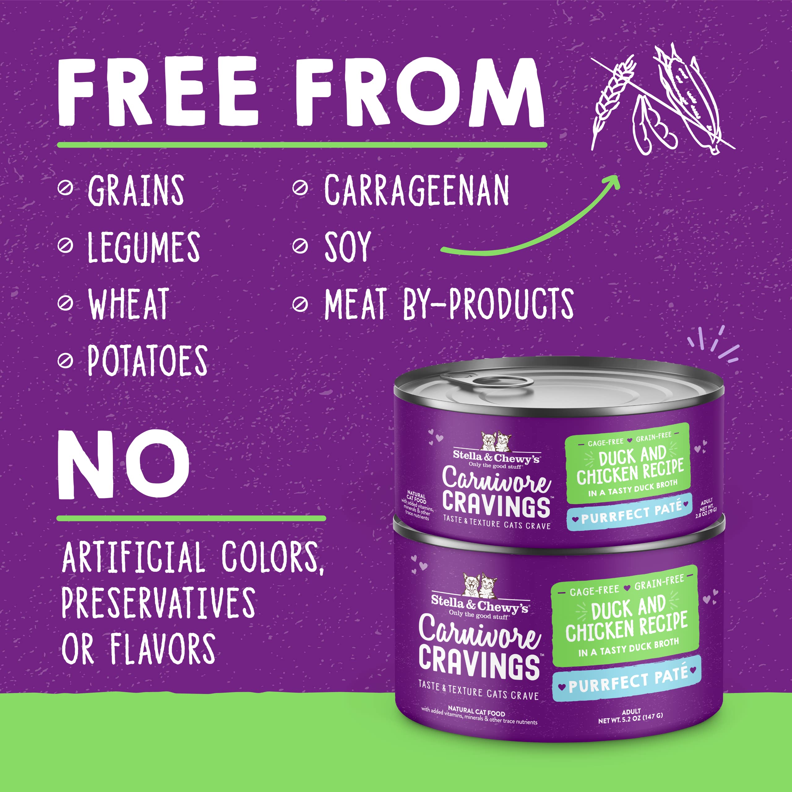 - GRAIN-FREE NATURAL INGREDIENTS - Made with cage-free duck and chicken, free from grain, gluten, and carrageenan for easy digestion across all life stages.