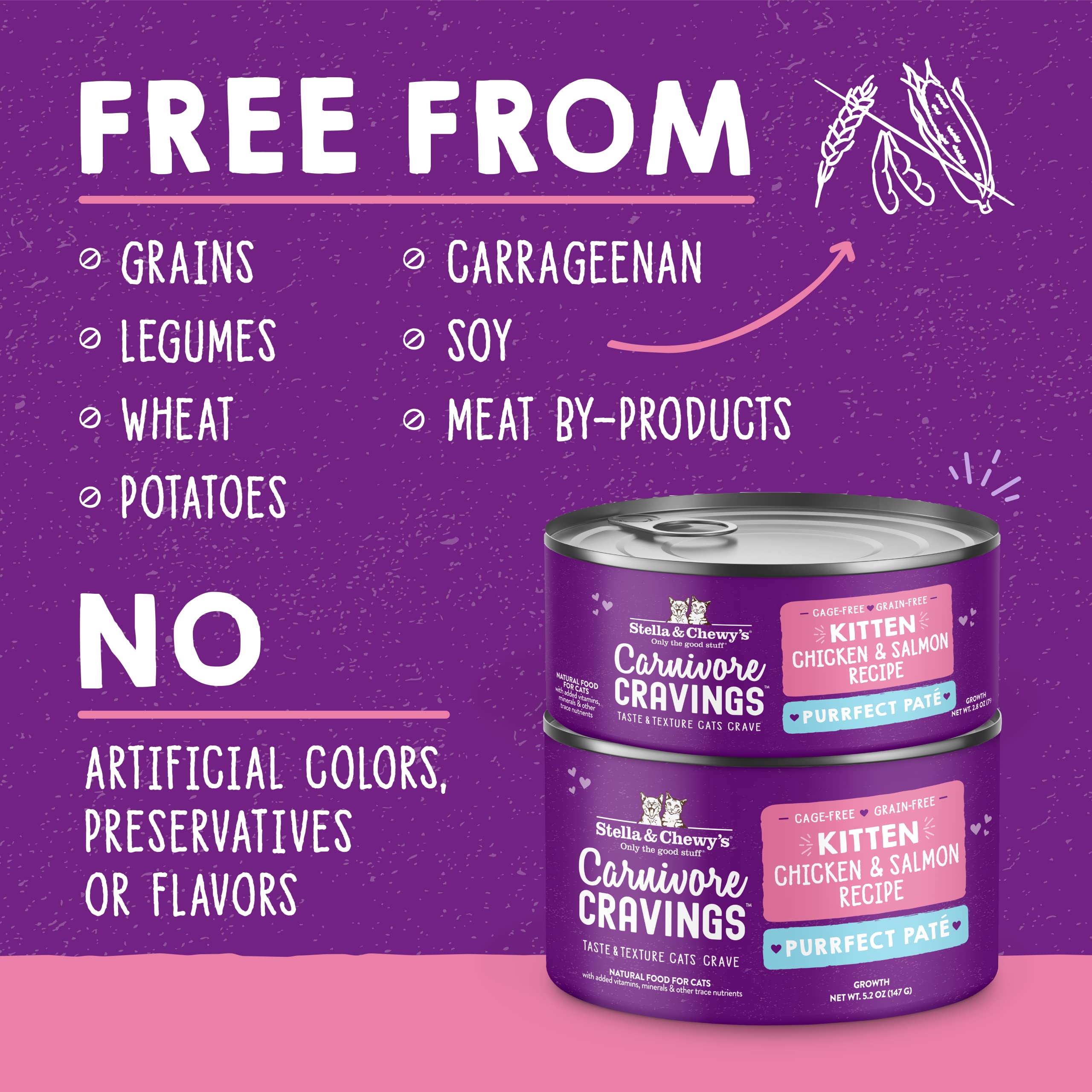 - GRAIN-FREE NATURAL INGREDIENTS - Made with cage-free chicken and wild-caught salmon, free from grain, gluten, and carrageenan for easy digestion during critical kitten development.