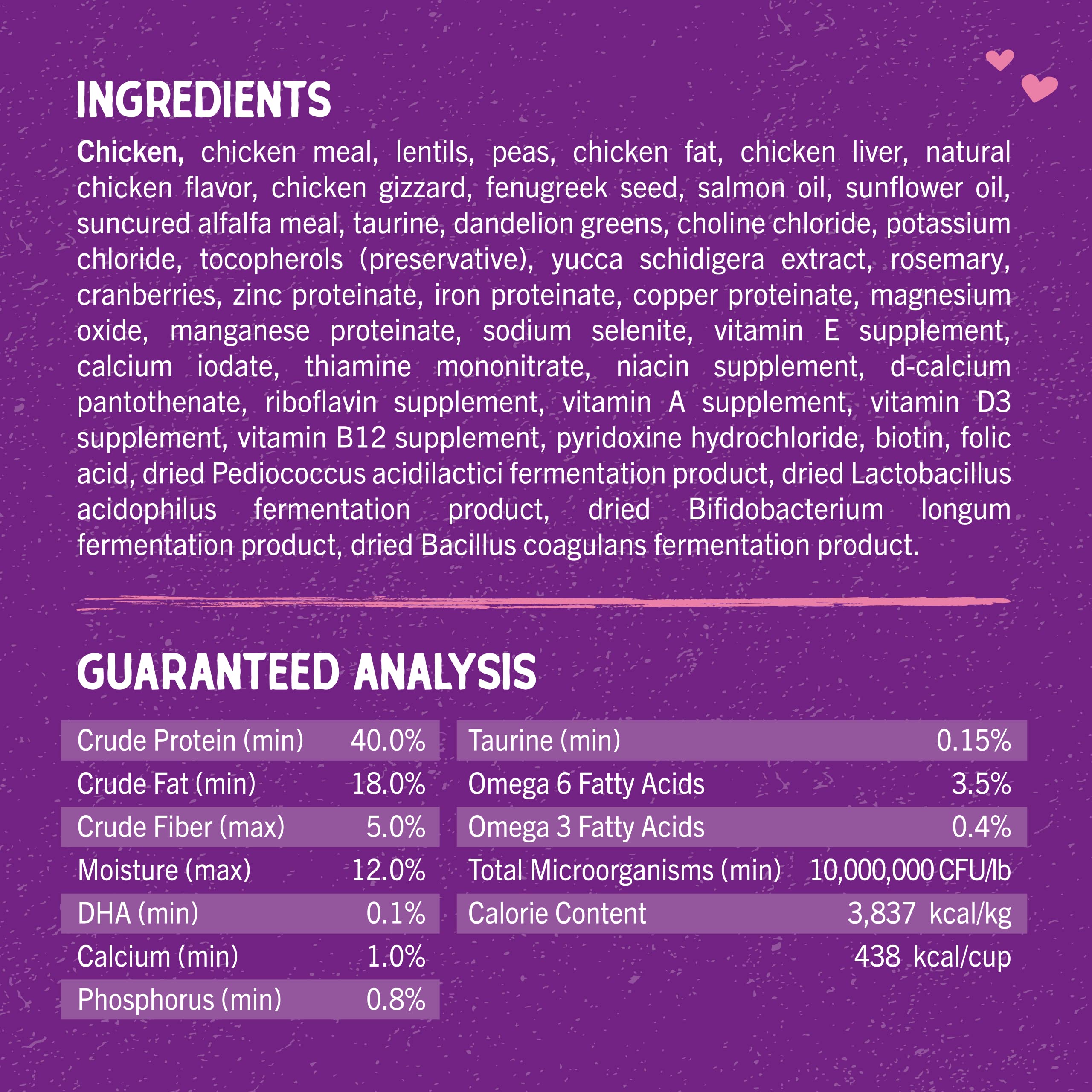 - Our Kitten recipe includes DHA to support brain and eye development, as well as optimal protein, fat and calories to meet the needs of growing kittens